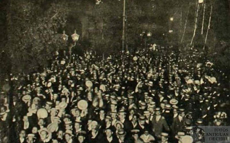 Plaza de Armas de Santiago, medianoche del 31 de diciembre de 1908, celebración de año nuevo.
