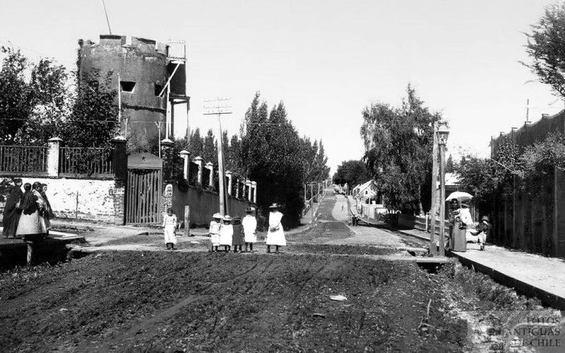 La estación Providencia, más conocida como estación Pirque en construcción, año 1909. Esta se encontraba en la comuna de Providencia,