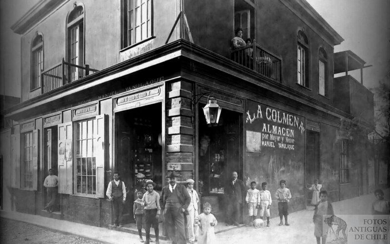Almacén «La Colmena» Arica, año 1929, del archivo fotográfico familiar de don Manuel Yanulaque Scorda, comerciante griego que vivió en Arica entre 1890 y 1934.