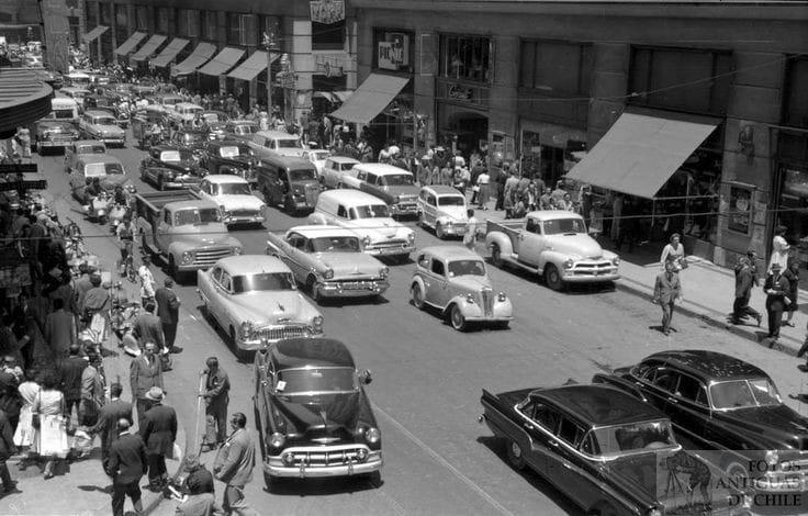 Automóviles circulando por calle Ahumada, Santiago de Chile.