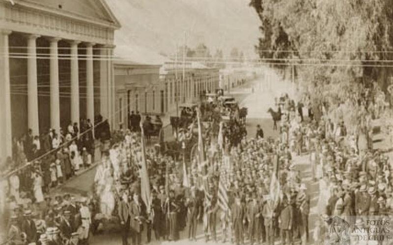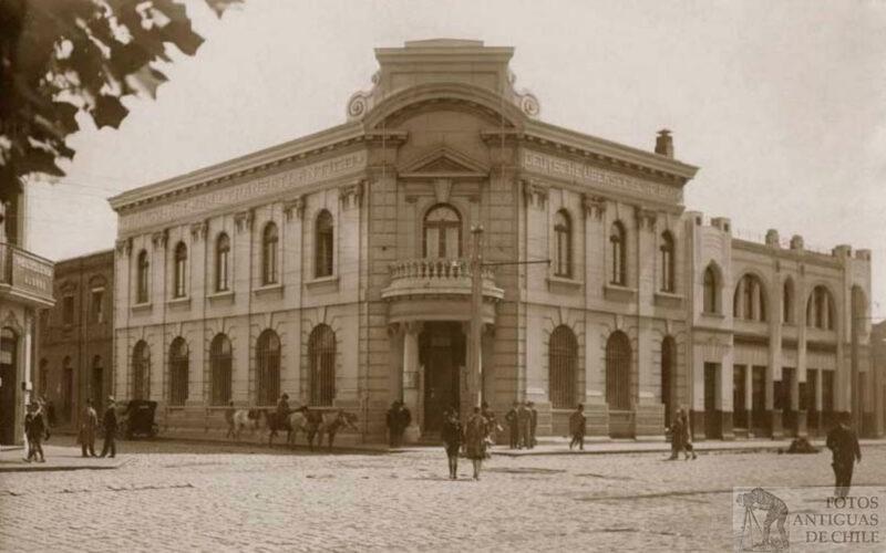 Esquina de Balmaceda con Errazuriz aproximadamente en el año 1920. A la izquierda la caja nacional de ahorros y a