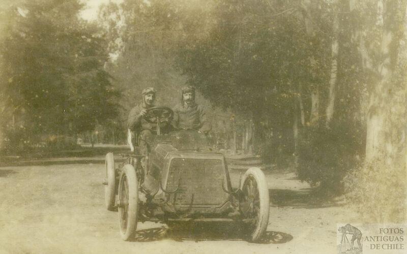 Primera carrera de autos en Chile, 6 de noviembre de 1904. Su ganador fue César Copetta Brosio, acompañado de su