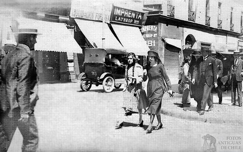 Transeúntes en calle Ahumada, Santiago de Chile, año 1921.