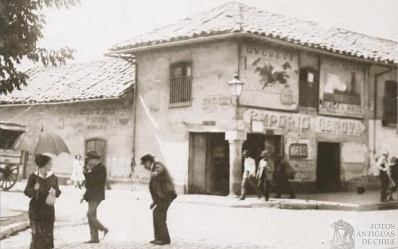 Emporio Génova, sito en Alameda esquina de José Victorino Lastarria, Santiago, año 1918.