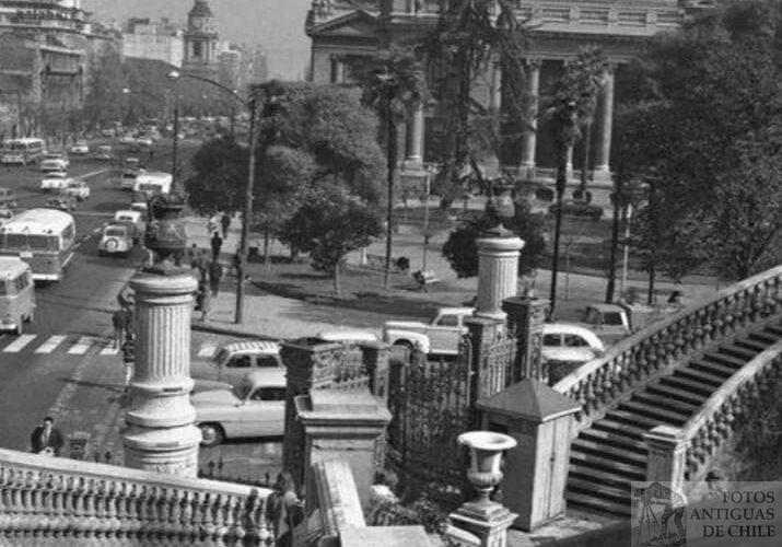 Vista de la Biblioteca Nacional y La Alameda , desde el Cerro Santa Lucía, Santiago de Chile a principios de