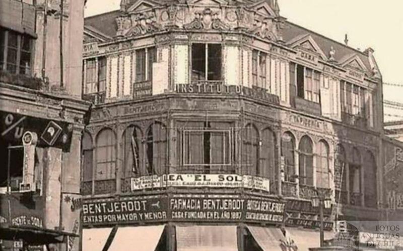 Farmacia Bentjerot, ubicada en la esquina de Merced con Estado, 12 de agosto de 1926.